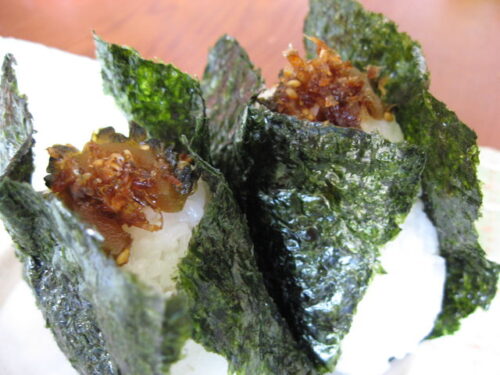 沖縄の塩の試供品をもらったので、それでおむすびを。