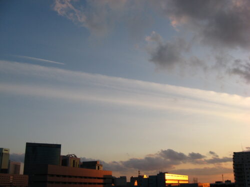 飛行機雲とはちょっと違う感じですね曇り