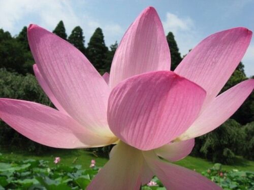 青空にピンクの蓮は映えますね