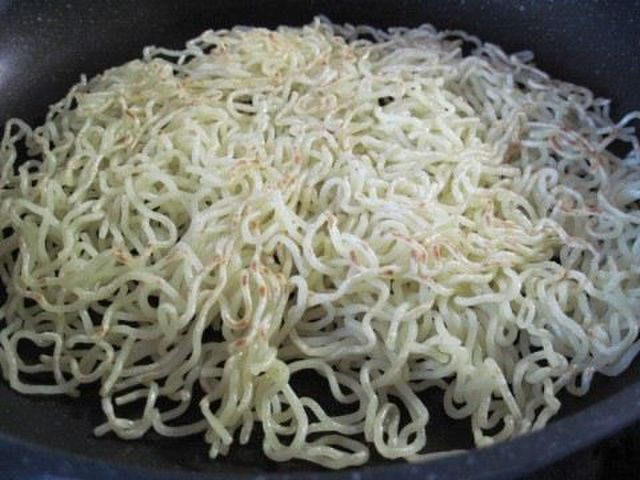 塩焼きそばだったら付いてきた粉末ソースで味付け。