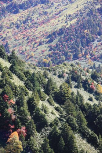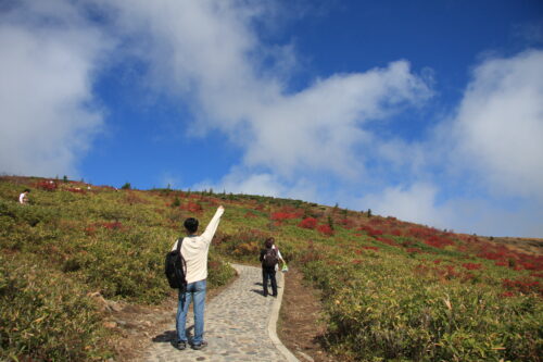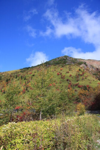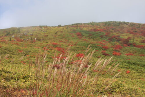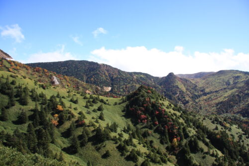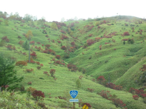 山の緑色の部分はクマザサが生い茂っていました。