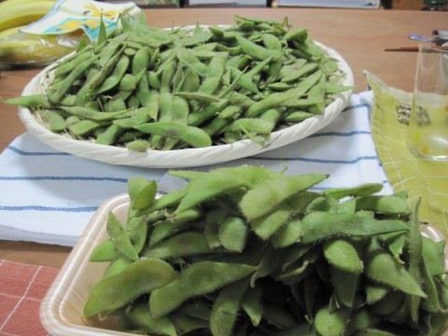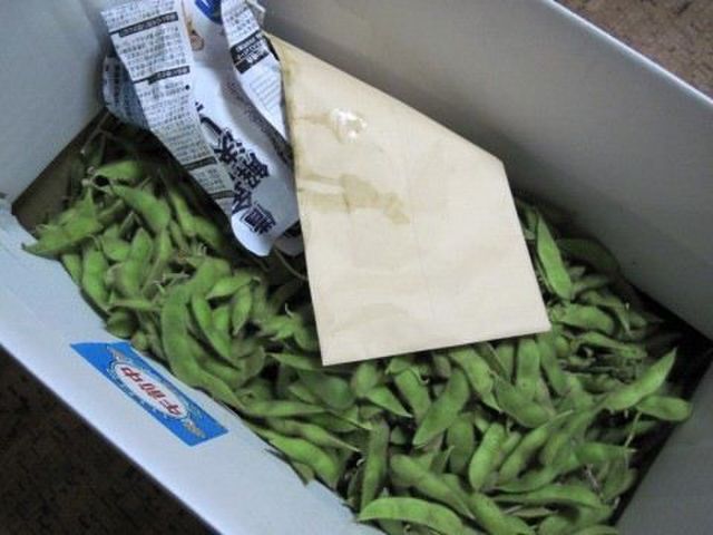 段ボールに落ちる枝豆の音が、団地内に響く響く