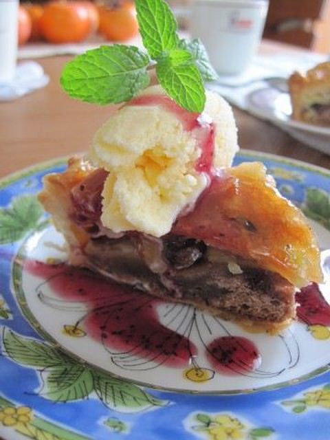 温めたアップルパイにアイスクリーム。そしてブルーベリーソースなんて、素敵過ぎます(*^_^*)♪