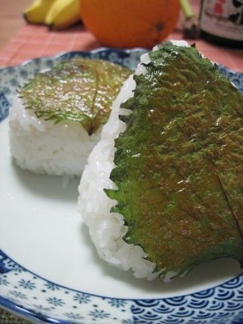 しそおにぎりは初めて見ました。どんな味がするんだろう