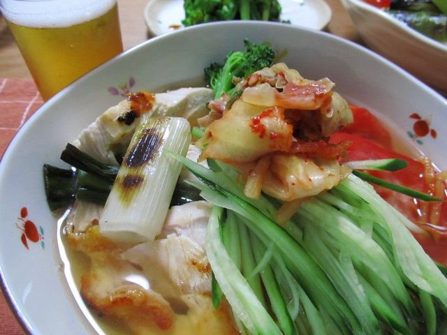 焼ネギ添えキムチ冷麺グッド(上向き矢印)