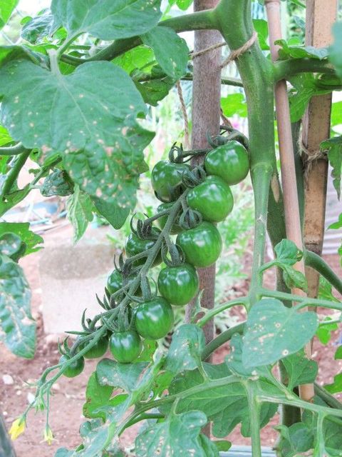 ミニトマトは、実の数が多くつきましたグッド(上向き矢印)