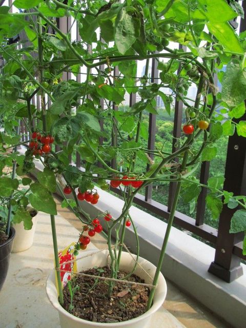 プチトマトは、うちのベランダも結構大きめの鉢に1本だけ植えてるよ。
