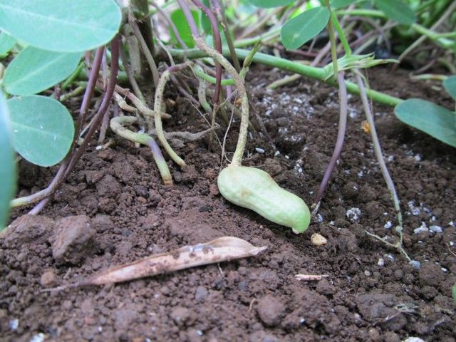 花のつけ根にある子房柄(しぼうへい)が伸びてきて、地面に刺さり