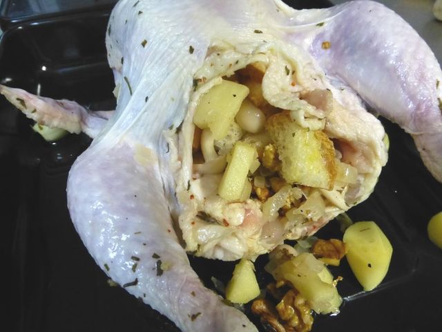 詰めものは、カリカリにしたフランスパン、炒めた玉ねぎ