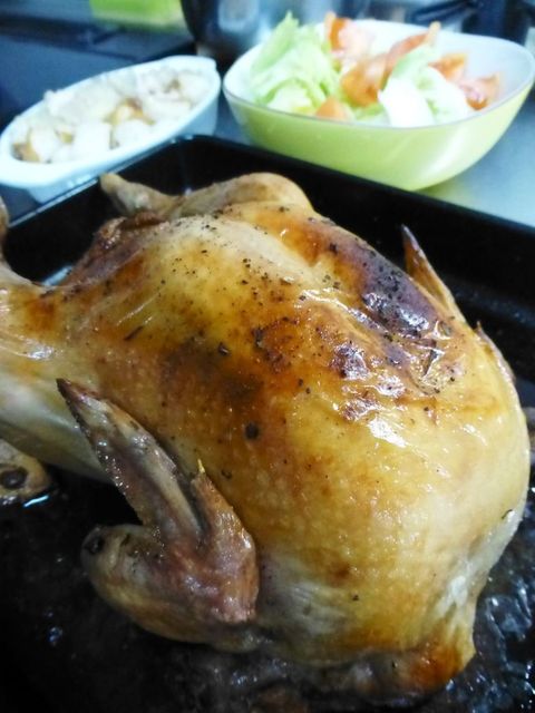 たまにはクリスマスらしいものをと思い、ローストチキンを焼きました。